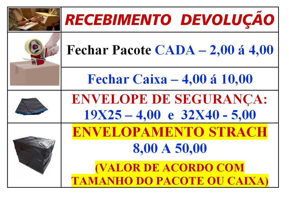 OU DEVERÁ RETORNAR COM O PACOTE EMBALADO CORRETAMENTE